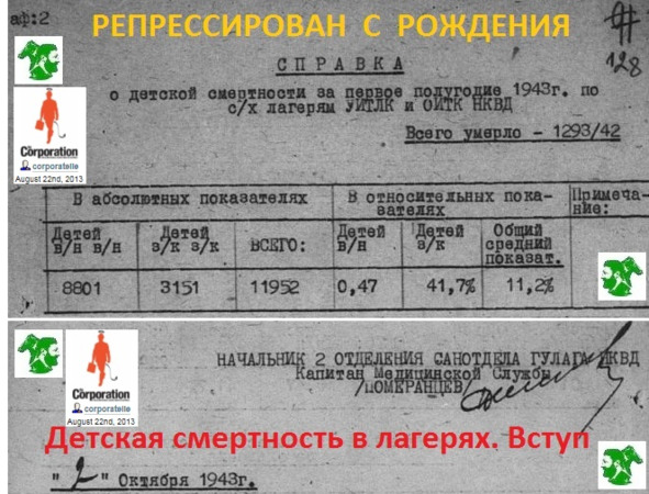 Ну вот мы и подобрались к важному этапу по раскрытию обстоятельств моего реального появления на свет! В Интернете опубликован ряд документов по детской смертности в наших отечественных лагерях.