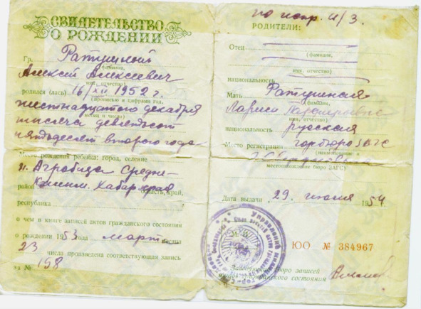 Вот мне и из Тенькинского райзагса выдали Свидетельство о рождении там – в Гулаге.