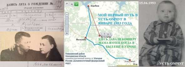 Я рассматриваю эту подборку как тотальное опровержение утверждений чиновников всех уровней, что якобы запись о моём рождении отыскать невозможно. Захотят – найдут за пятнадцать минут. Если от этого будет зависеть карьера и должность найдут практически мгновенно. Не устаю удивляться нашим чиновникам. Всё ждут, что я проделаю всю работу а им останется только поставить печать и подпись? Впрочем не суть важно. Что я могу предъявить в суде? Фотокопию свидетельства о рождении? Вот эти «Решения» без печати и подписи с искаженной датой моего рождения? Справку женщины отсидевшей по репрессивному Указу несколько лет? Всё это происходило тогда, когда я был смертельно больным ребёнком, не умеющим еще ни читать, ни писать, ни понимающему действий и бездействий направленных на уничтожение моих прав, свобод… Попрошу «восстановить утраченную запись»? А где доказательства её «утраченности» если по закону она хранится в минимум двух архивах? И где доказательства что её вообще исполняли? Я хотел хоть одним глазком взглянуть на регистрацию рождений в Агробазе от 16 декабря 1952 года. Сейчас даже погода в этот не самый холодный декабрьский день известна и опубликована в Интернете. Но увидеть медицинскую регистрацию моего рождения нельзя. Тайна!!! А весь смысл этой тайны прост: Государство не желает платить по счетам. На всякий случай «ты вообще не родился», а то еще потребует компенсации чудом выживший уродец… И хотя подложное Свидетельство о рождении дает мне отчество а вместо имени и фамилии отца ставит прочерк я точно знаю: папа и мама у меня были в наличии. Оба. И оба находились в зоне на Колыме. Тому есть много разных подтверждений но для меня главное – это рассказ моей мамы Почему ей меня спасшей я должен не верить, а государству многократно пойманному на лжи – верить? Что я родился тюрьме – об этом орал весь наш двор. Этим тыкали мне в глаза все кому не лень. С этим я прожил всю жизнь. С криком-предсказанием соседки: «В тюрьме родился, в тюрьме и умрёшь!»