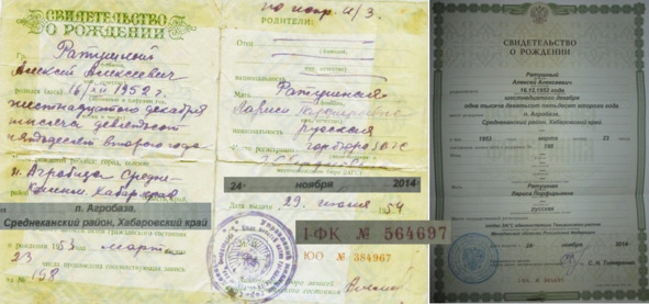 Вот какие интересные сюрпризы поджидали меня при получении наконец Свидетельства о рождении! Прожив 62 года (26 наоборот!) и один день я наконец стал официально родившимся гражданином Российской Федерации!!!