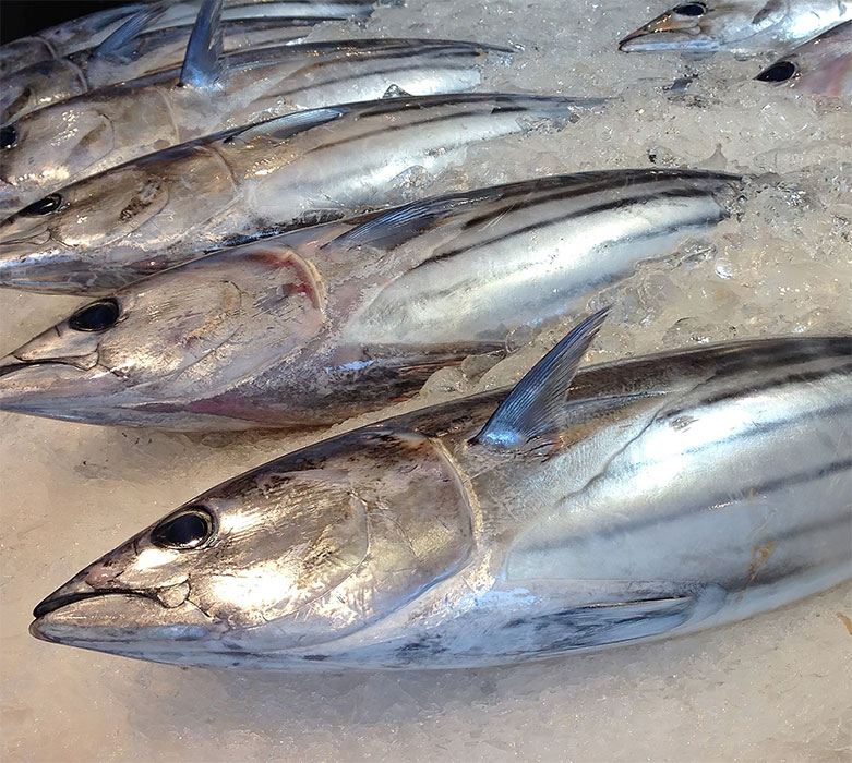Тунец кацуо – не такой крупный, как магуро, но обладает более сочным и нежным мясом, поэтому ещё до того, как столица переехала в Эдо, его уже вылавливали в водах Сагами и доставляли в прежнюю столицу по специально проложенной прямой грунтовой дороге от Киото до океана. За сутки по этому тракту проезжали тысячи повозок на конной тяге, нагруженные в основном свежими морепродуктами.