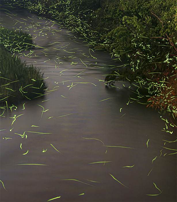 Эти места всегда одни и те же. Светлячками буквально кишат тёплые воды, соприкасающиеся с прибрежными зарослями или опорами мостов. Туда направляются и там же скапливаются многочисленные лодки с участниками ночного зрелища.