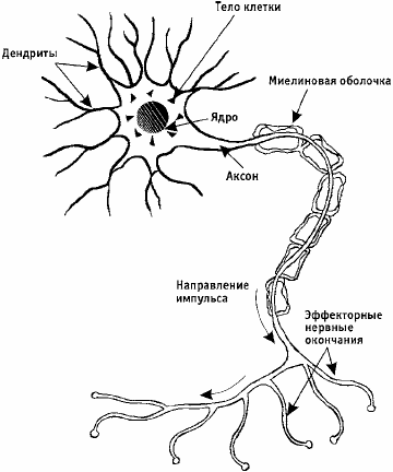 Наше тело состоит из 220 разновидностей клеток. Все они организованы по одному принципу, но выполняют разные функции. Внешнее отличие нервной клетки (рис. 5) от всех остальных состоит в том, что она имеет отростки двух типов: