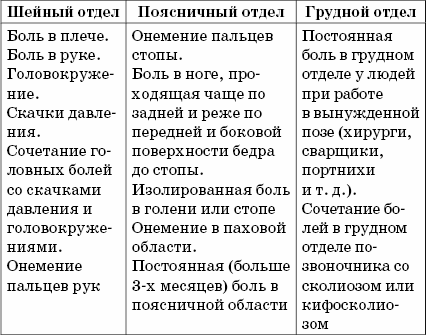 Симптомы заболевания зависят от места межпозвоночной грыжи в позвоночнике.