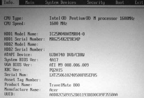 Секция InfoПервая секция Info содержит информацию о ноутбуке (см. рис. 6.1). Следует отметить, что она есть не во всех BIOS.