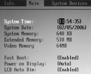 BIOS мобильного компьютера отличается от настольного меньшим количе ством настроек. Однако это не означает, что ноутбуки хуже, просто в них данные настройки не нужны. В настольный ПК вы сможете самостоятельно установить множество компонентов, настройка которых отчасти производится из BIOS. Сами же добавить что-либо в мобильный компьютер вы не сможете (имеется в виду вскрытие корпуса и установка нового процессора, видеокарты и т. д.).