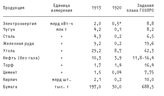 Таблица 1. Основные показатели плана ГОЭЛРО