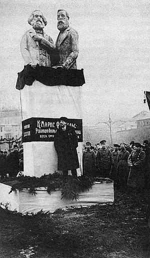 Ленин выступает на открытии гипсового памятника К. Марксу и Ф. Энгельсу. 1918 г.