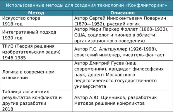 Сочетание вышеуказанных подходов помогло мне создать технологию системно-интегративных переговоров и решения конфликтов людей «Конфликторинг».