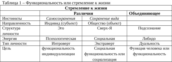 Функционализм подразумевает равенство этих стремлений, а при отсутствии одной из них или недостаточной удовлетворенности, происходит неисполнение человеческих функций. Функциональность мы видим, как стремление каждого человека к жизни и выполнению определенных полезных психических и социальных функций.