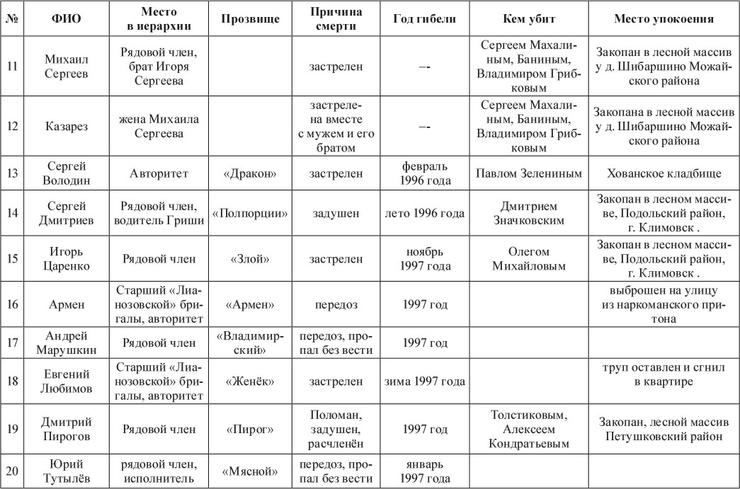 Он был «корешем»[37], который взял на себя вину за общее преступление и отсидел за Юру и ещё кого-то. Поступок по тем меркам и понятиям, да что говорить, и по нынешним временам, благородный и достойный, но вряд ли оценённый. Был у «лианозовских» и второй «старший», по статусу выше – «Женёк». Опасный и умный человек, из-за денег и власти готовый на всё.