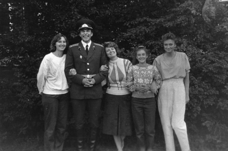 1989 год. Выпуск из военного училища. После прощального парада. Слева направо: двоюродная сестра мамы, тоже Татьяна, автор, мама, сестра автора, будущая супруга