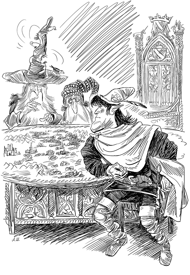 Капитан же Прыгун из пиршественного зала, где оставил он Буруна, вернулся в зал большого королевского совета, где за огромным круглым столом его ждали только двое – Волшебник и Казначей.