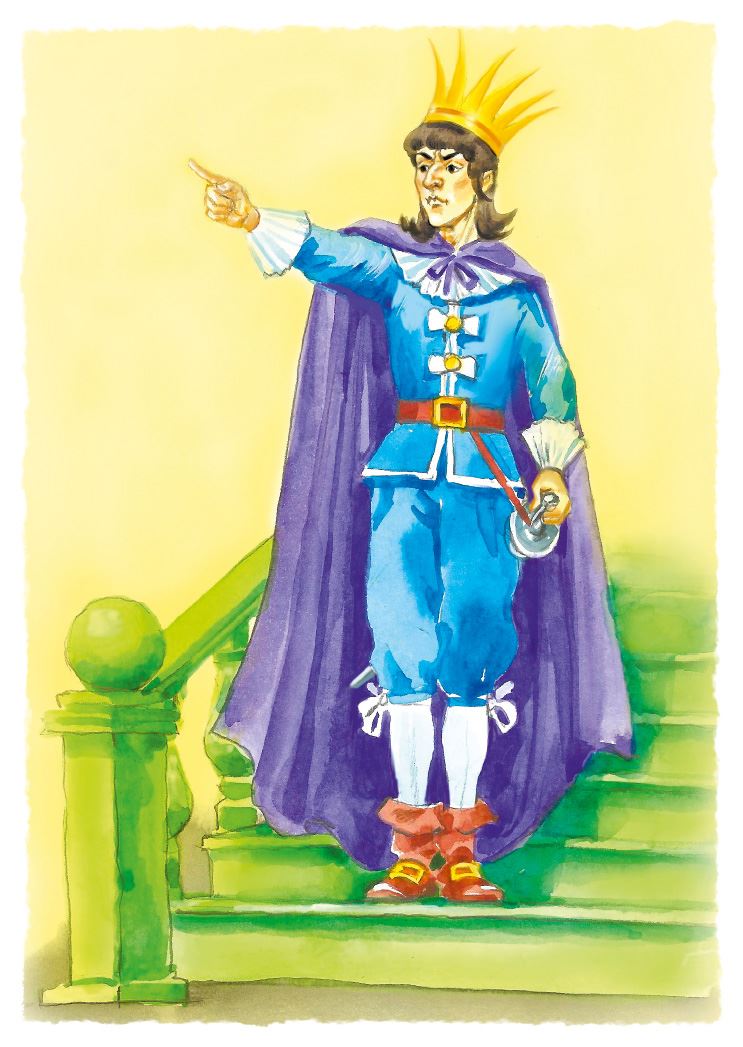 К сожалению, не все местные жители были настроены так дружелюбно. На ступеньках крыльца появился высокий худощавый человек в роскошном одеянии. На голове его красовалась золотая корона с бронзовым ободком по краю. Тотчас же из парадных ворот высыпала свита. Окинув площадь орлиным взором, человек в короне громко воскликнул: