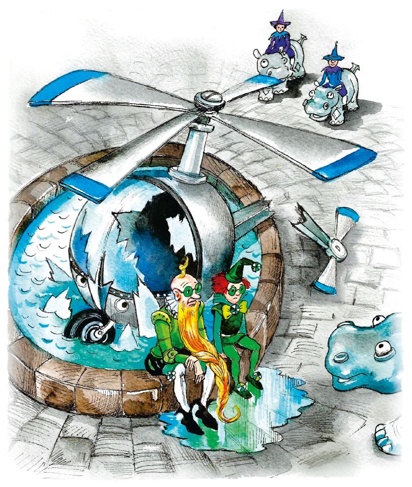 Правда, фельдмаршал Дин Гиор зацепился бородой за штурвал и набил себе несколько шишек, а Фарамант едва не захлебнулся. Но в целом всё обошлось благополучно. А вот Страшила исчез бесследно – его не нашли ни в сломанной кабине, ни в бассейне фонтана, ни на брусчатке площади.