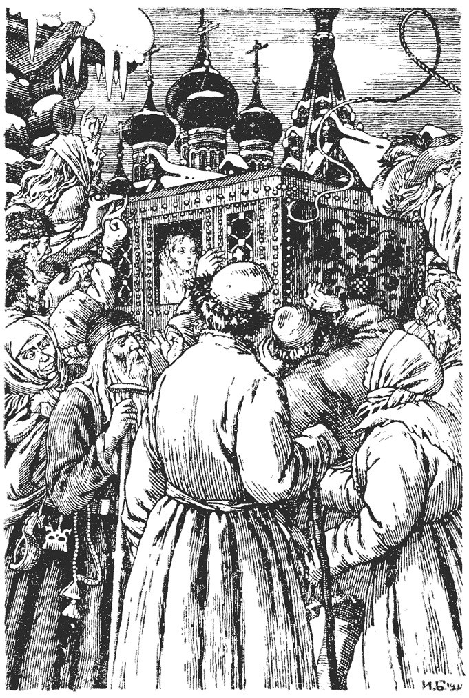 Стало видно на улице. Хлопали калитки. Шли гостинодворцы, туго подпоясанные кушаками. Без прежней бойкости отпирали лавки. Носилось воронье под ветреными тучами. За зиму царь накормил птиц сырым мясом, – видимо-невидимо слеталось откуда-то воронья, обгадили все купола. Нищий народ на паперти говорил осторожно: «Быть войне и мору. Три с половиной года, – сказано, – будет мнимое царство длиться…»