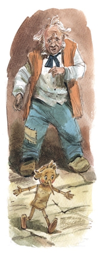 – Ну, погоди ж ты, я с тобой ужо расправлюсь, – отпыхиваясь, проговорил Карло и хотел засунуть Буратино в карман куртки…