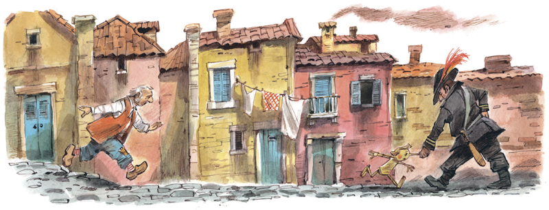 Слыша всё это, усатый полицейский схватил несчастного Карло за воротник и потащил в полицейское отделение.