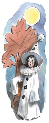 Из-за картонного дерева появился маленький человечек в длинной белой рубашке с длинными рукавами. Его лицо было обсыпано пудрой, белой, как зубной порошок.