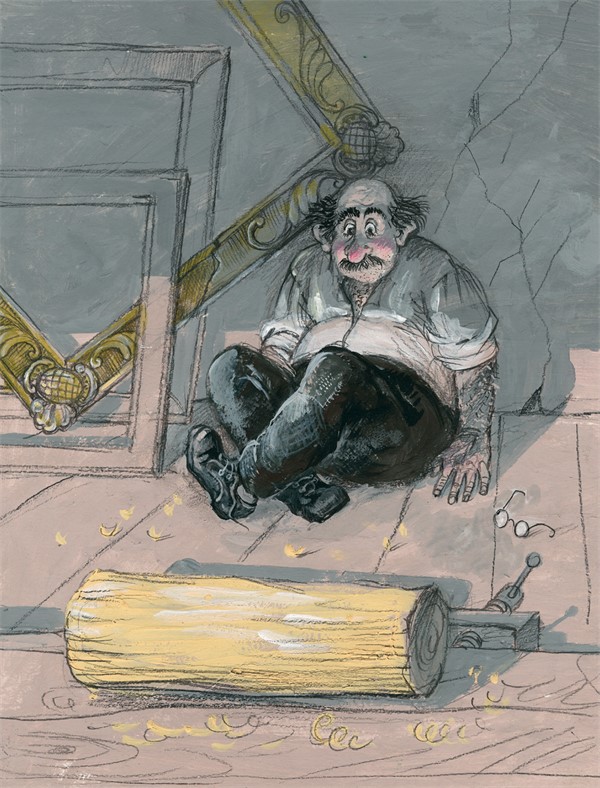 – Вот до чего доводит баловство! – проворчал папа Карло, поднимая с пола Буратино. Посмотрел, всё ли у него цело. Посадил его на колени, вынул из кармана луковку, очистил.