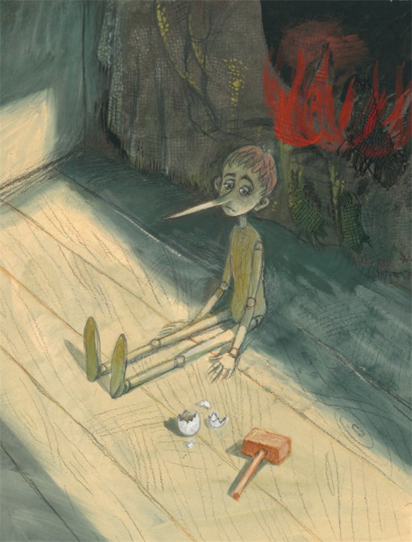 Карло вошёл в каморку, сел на единственный стул у безногого стола и, повертев так и этак полено, начал ножом вырезать из него куклу.