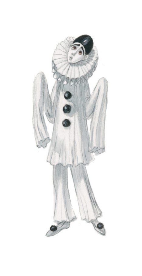 Из-за картонного дерева появился маленький человечек в длинной белой рубашке с длинными рукавами. Его лицо было обсыпано пудрой, белой, как зубной порошок.