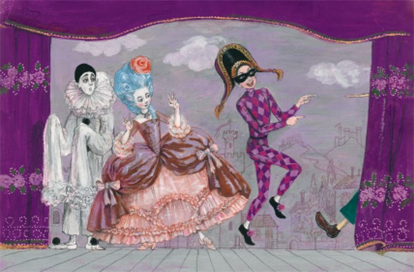 Тогда он с лавки прыгнул на суфлёрскую будку, а с неё на сцену. Куклы схватили его, начали обнимать, целовать, щипать…