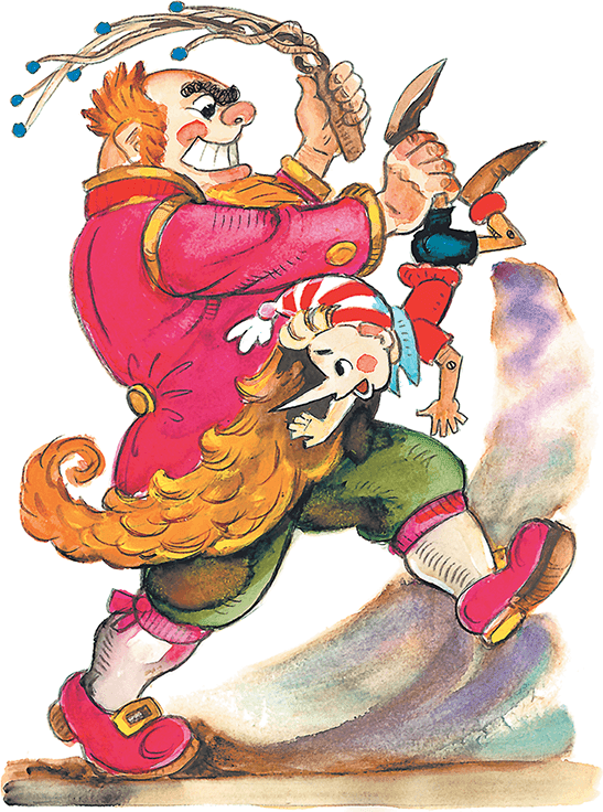 – Аап-чхи! – чихнул Карабас Барабас с таким шумом, что Пьеро отлетел налево, Арлекин – направо, а Буратино завертелся волчком.