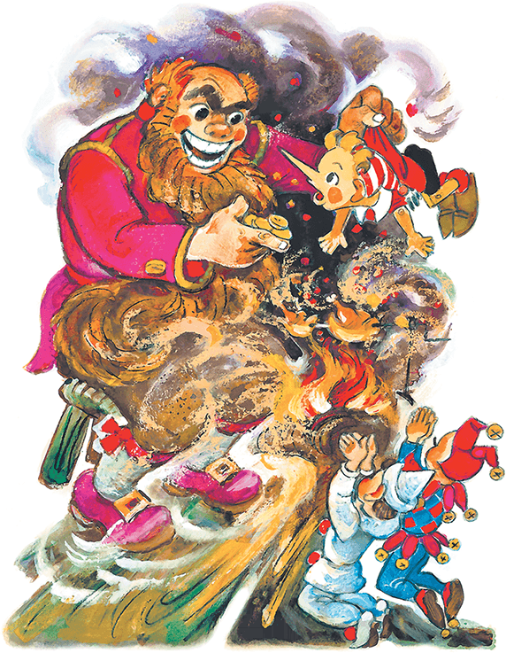 – Принесите-ка мне этого бездельника Буратино, – сказал синьор Карабас Барабас. – Он сделан из сухого дерева, я его подкину в огонь, моё жаркое живо зажарится.