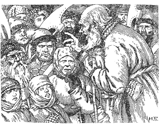 В стрелецкой слободе объявилось шесть человек раскольников – начетчики, высохшие, как кость, непоколебимые мужики. «Одно спасение, – говорили они стрельцам, – одно ваше спасение скинуть патриарха-никонианина и весь боярский синклит, ониконианившийся и ополячившийся, и вернуться к богобоязненной вере, к старой жизни». Раскольники читали соловецкие тетради – о том, как избежать прелести никонианской и спасти души и животы свои. Стрельцы плакали, слушая. Старец-раскольник, Никита Пустосвят, на базаре, стоя на возу, читал народу по соловецкой тетради: