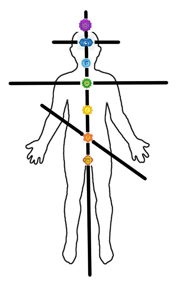Энергетический крест – это вихревая энергетическая структура, которая является, своего рода, «скелетом» биоэнергосистемы человека. Его вертикальная основа проходит вдоль основного энергетического канала Сушма, верхняя горизонтальная перекладина – на уровне глаз (чуть ниже Аджна-чакры), вторая горизонтальная перекладина – на уровне плеч (между Вишудхой и Анахатой), и наклонно-расположенная перекладина проходит от печени к левому яичнику через пупочное отверстие (чуть ниже Манипуры-чакры), закрывая космический вход человека. С точки зрения В.М. Приваловой Космические силы Космоса через энергетический крест дают человеку индивидуальную космическую программу на период данной инкорнации. Данная программа вступает в действие через всевозможные культовые обряды.