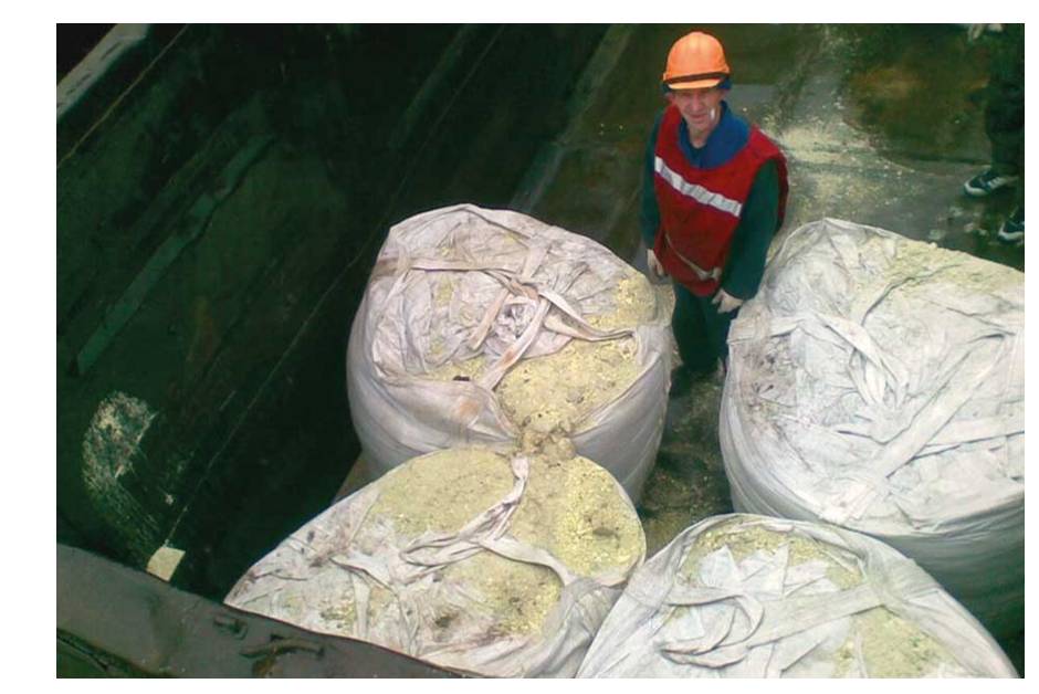 Работа в порту: на фото проверяю разгрузку комовой серы для отправки в Китай
