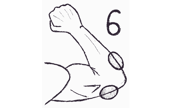 6- Локоть. Удары локтем могут наноситься под двумя разными углами. Сам локтевой сустав при этом в ударе задействоваться не должен, чтобы не повредить локтевую кость.