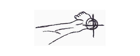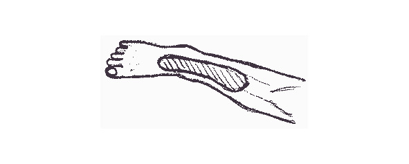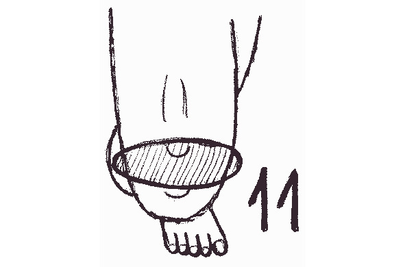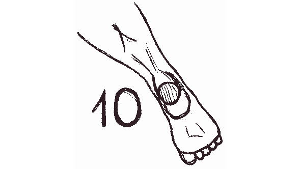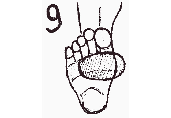 9- Подушечки пальцев стопы. Пальцы следует подогнуть как можно дальше вверх, выводя вперед подушечки ступни.