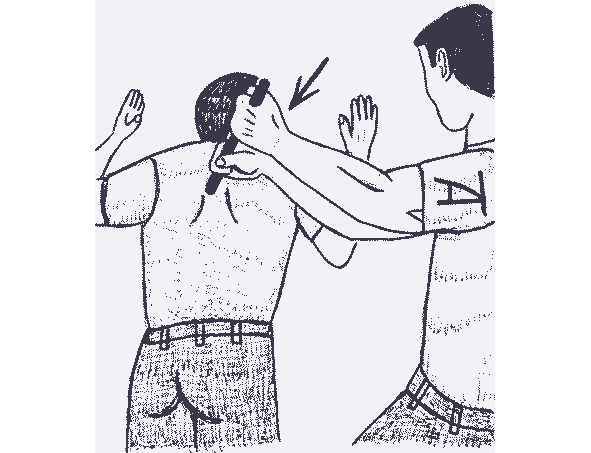 рисунок 10 а- Смертельно опасный удар по основанию черепа или седьмому шейному позвонку.