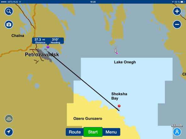На третий день, когда погода наладилась, по всем показателям и приметам ожидалось только её улучшение, и мы решили отправляться в Петрозаводск, куда должны были приехать Сергей с Татьяной, бывалые моряки, прошедшие на своей 8-ми метровой яхте из Москвы на Канары. А вот на Онеге они еще не были. С Брусно до Петрозаводска нам нужно было пройти 37 миль, часов на шесть хода.