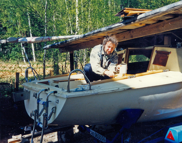 Уже весной 97-го года, Алексей, что продал мне яхту и потом помогал мне её оснащать, познакомил меня с двумя капитанами, Александром и Геннадием, которые так же искали себе попутчиков для похода на Онегу. Так случилось, что мы трое были Капитаны и владельцы этих небольших яхт микро-класса – длина 5,5 метра, ширина 2,5 метра, вместимость каюты 4 человека (но это, как кильки в банке, до сельдей даже не дотянули), осадка 0,4/1,5 метра, высота мачты 7,5 метра, площадь основных парусов 25 м2, вес яхты 750 кг. Представили, какая маленькая скорлупка, чтобы идти на такой в путь около 3,5 тысячи километров – на Онегу и обратно (есть фото, где «микрик» стоит рядом с «Дюфур», как тузик). Но эта яхта является «входным билетом» в каютный яхтинг. Это для тех, кто ограничен в средствах или хочет попробовать, как это жить и путешествовать вдвоем на яхте. Как правило, это молодые люди до 35-37-ми лет. А еще эта яхта удобна тем, что она трейлерная, перевозится за обычным легковым автомобилем, и при наличии слипа или пологого песчаного берега не требует крана для спуска на воду. Эксплуатировать её много дешевле и в том плане, что хранить её можно не в яхт-клубе, а в гараже или у себя на даче. Кто бы мог подумать, что через десять лет, я стану учредителем Компании «Яхтенный Центр Адмирал Ушаков» – верфь парусных яхт с французским участием, первой выпускаемой лодкой которой будет яхта микро-класса «Электра-18». У меня и в мыслях тогда такого не было, но это уже совсем другая история.