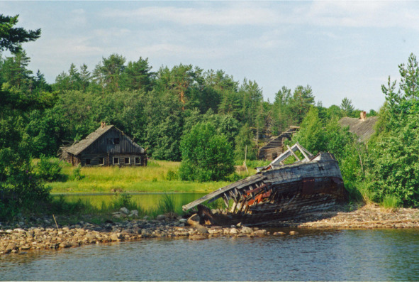 Брошенный баркас в брошенной д. Пегрема