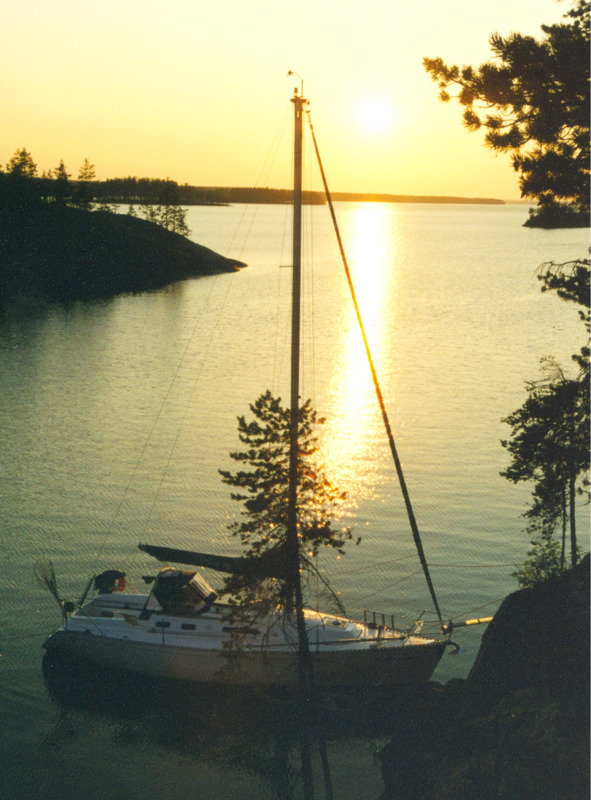 Вот и у нас дела были не супер. Работу Клуба (ROSC) фактически прикрыли налоговые органы и изменившееся законодательство, и я болтался без дела; супруга как финансист, аудитор и налоговик была востребована и работала на серьезных должностях в крупных компаниях, но огромная нагрузка, ответственность и стремление всех обходить Закон подталкивали к уходу и созданию семейного бизнеса. «Микруху» и швертбот «Мева» пришлось продать. На черный день оставил виндсерфинг в полном комплекте и параплан с мотором – рука не поднималась. Надо было на что-то содержать «Дюфур», дачу и осуществить летний поход на Онегу – нет смысла держать яхту на кильблоке, она должна рассекать воду, а платить так и так приходится. Многие считают, что можно что-то купить (машину, дачу, яхту, квартиру …), но не пользоваться – нееет, от этого сужается время возможностей, останавливается развитие жизни и утекает ваш потенциал. Вещи дешевеют, не принося ничего. А длительные походы на яхте в места безлюдные дают возможность уйти от всего негатива жизни, переключиться, взглянуть на все со стороны, подумать, набраться сил и новых идей. Недельные туры в Европу – это просто развлекуха.