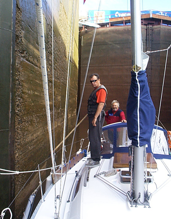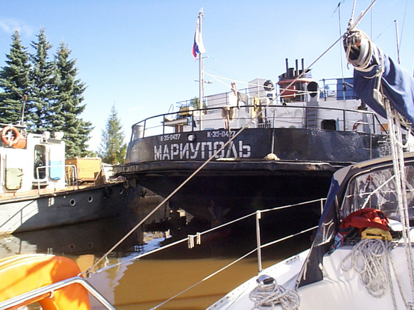 Капитан сухогруза по громкой связи дал команду снимать швартовы, и матросы ушли. Ворота шлюза открылись, сухогруз начинает движение. Его корма удаляется, а мы и не заметили, как прошло шлюзование, получая урок новой семейной жизни – интересно матросы пляшут.
