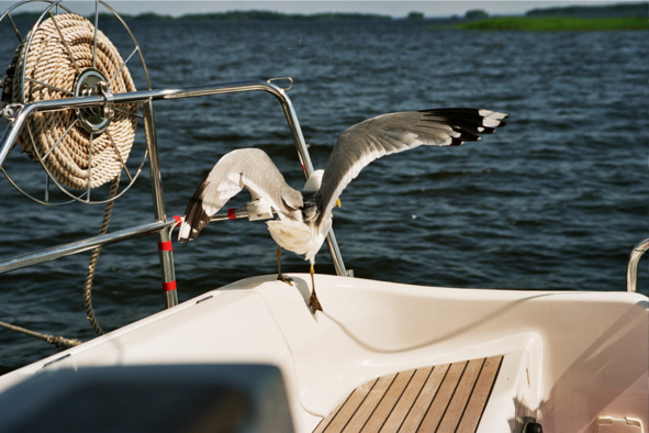 Милиционер уезжает, а я только теперь замечаю гвалт и кружение чаек над кокпитом, которые стремятся схватить и поднять в воздух батон белого хлеба.