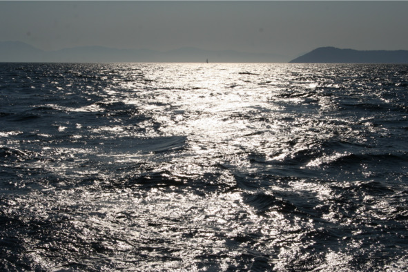 Дует хороший ветер в 13—15 узлов, что дает нам возможность идти под парусами со скоростью 6—7 узлов, наслаждаться красотами Сицилийского берега. Лодку ведет авторулевой, а я, в полудреме, сижу за штурвалом и контролирую всё, что происходит на катамаране и на воде по ходу движения. Размеренное движение в такт волнам убаюкало команду, и мы двигались в тишине, даже дети шалили как-то тихо и вяло. Второй катамаран мы так и не догнали, он был на горизонте. Я мог его разглядеть только в бинокль и то с крыши рубки.