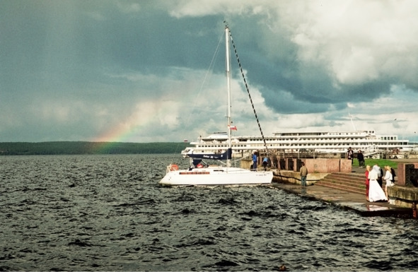 Наташа вела более активный, чем Катя, образ жизни – она купалась, загорала, путешествовала на Тузике недалеко от яхты, ходила в лес и залезала на скалы. В Кижах наши матросы накупили кучу сувениров всем своим знакомым. Надо сказать, что с погодой нам не очень-то везло в те дни. Ветра, дожди, прохладно. Иногда нам приходилось постоянно сидеть в яхте. Мы играли в домино, в карты, постоянно пили чай и ели.