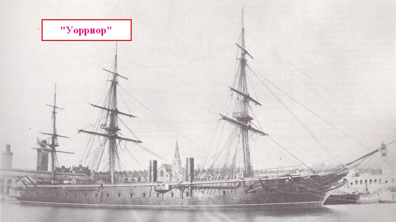 При крещении корабль получил название «Уорриор» (“Warrior» – «Воитель»). Так как это было первый броненосец в мире, построенный из железа (французский «Куронь» хотя и был раньше заложен, но вступил в строй позднее), данное обстоятельство дало англичанам право приписать себе первенство в создании «первого истинного броненосца».