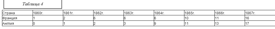 Количество мореходных броненосцев во флотах Англии и Франции в 1860–1867гг.