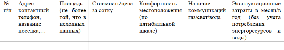 Если смотреть по Подмосковью, то имеет смысл выделять из общей суммы 10–20 % на приобретение участка. Разумеется, для тех, кто еще не имеет такового. Идеально, если вы подбираете участок с коммуникациями в каком-либо из коттеджных посёлков. Это существенно упростит решение вопросов подключения к коммуникациям и снизит стоимость решения данного вопроса. С этого момента можете погружаться в Интернет и искать подходящие вам варианты. Рекомендую составить таблицу примерно такого содержания (набор параметров и их приоритет каждый выбирает сам):