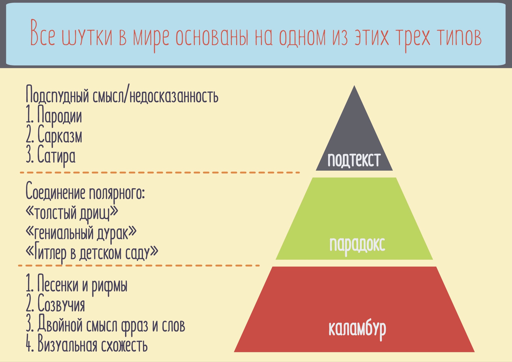 Для того, чтобы помочь и тем и другим в первую очередь мы поговорим о предпосылке. Под предпосылкой мы будем иметь ввиду ситуацию в реальном мире, которая становится объектом для шуток.