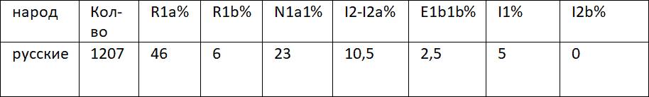 Таблица: Y-хромосомные (мужские) гаплогруппы у славянских народов.