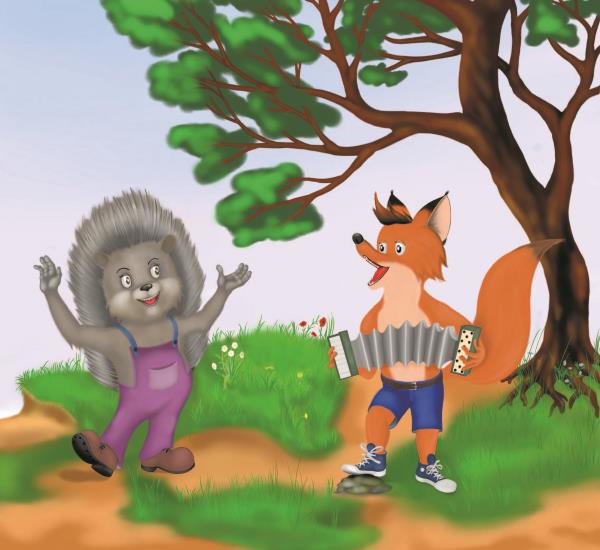 – Это же гармошка! – закричал от радости удивлённый ёжик и захлопал в ладоши. – Лисёнок сейчас будет мне играть и петь! А что за песню ты мне споёшь? – спросил он у Лисёнка.