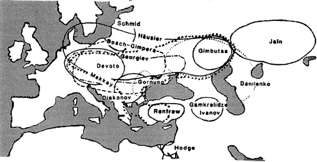 Таким образом, подавляющее большинство современных теорий и.-е. прародины обращается все-таки к Европе или, в крайнем случае, к прилегающему к ней району (Малой Азии).